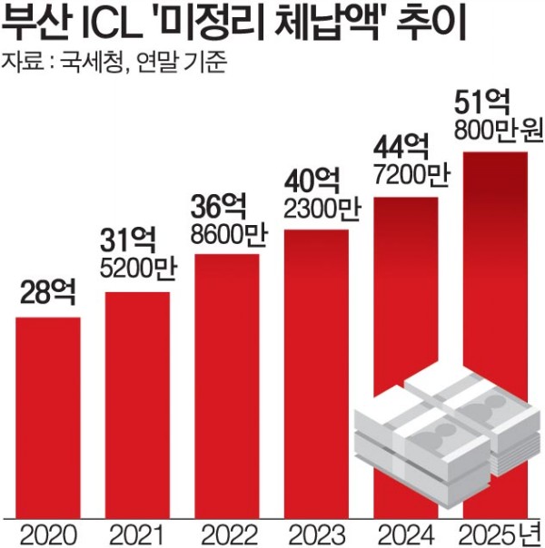 ºÎ»êÀÇ ICL ¹ÌÁ¤¸® ü³³¾×ÀÌ 50¾ï ¿øÀ» ³ÑÀº °ÍÀº °ü·Ã Åë°è°¡ °ø½ÃµÇ±â ½ÃÀÛÇÑ 2012³â ÀÌÈÄ Ã³À½ÀÌ´Ù.
