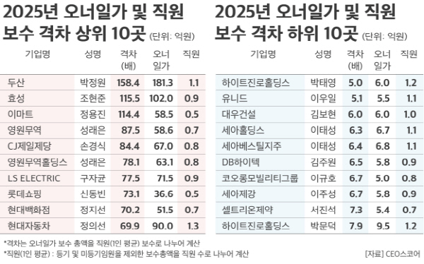 2025³â ¿À³ÊÀϰ¡¿Í Á÷¿ø °£ º¸¼ö°ÝÂ÷ »óÀ§ ÇÏÀ§ 10°÷, CEO½ºÄÚ¾î