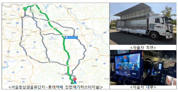 ÀÌ¿¡ µû¶ó ÀÌ ±â¾÷Àº ¾ÕÀ¸·Î ¼­¿ï µ¿³²±Ç ¹°·ù´ÜÁö¿Í ·Ôµ¥Åùè ÁøÃµ¸Þ°¡ÇãºêÅ͹̳ÎÀ» ÀÕ´Â 112§°ÀÇ Àå°Å¸® ³ë¼±(Áߺΰí¼Óµµ·Î)¿¡¼­ ÅÃ¹è ¿î¼ÛÀ» ÇÏ°Ô µÈ´Ù. ÅõÀÔ Â÷·®Àº Ÿ´Ù´ë¿ì ¸Æ½ë 25£ô Æ®·° 1´ëÀ̸ç ÃÖ´ë ½Ã¼Ó 90km·Î ´Þ¸± ¼ö ÀÖ´Ù. ¿îÇà ½Ã°£Àº ÆòÀÏ ÁÖ 3ȸ(¿ÀÈÄ 8½Ã~»õº® 5½Ã)·Î Á¤ÇØÁ³´Ù. ¿îÇà ÇÙ½ÉÀº ¡®ÀÚÀ²ÁÖÇà Æ®·°À» Ȱ¿ëÇÑ ¹Ìµé¸¶ÀÏ( Middle Mile-¹°·ù¼¾ÅÍ¿¡¼­ È­¹°À» ÇãºêÅ͹̳Π¶Ç´Â Áö¿ª °ÅÁ¡À¸·Î ¿Å±â´Â ÀÏ) ÀÏ¹Ý Åùè È­¹° ¿î¼Û ¼­ºñ½º¡¯´Ù. ÀÌ °úÁ¤¿¡¼­ Çѱ¹µµ·Î°ø»ç´Â ¾ÈÀü¼ºÀ» ³ôÀ̱â À§ÇØ ¿îÇà °üÂû ü°è¸¦ ±¸ÃàÇØ ¿î¿ëÇÑ´Ù.