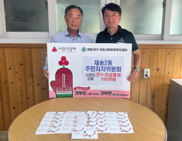 ÇØ¿î´ë±¸ Àç¼Û2µ¿ ÁÖ¹ÎÀÚÄ¡À§¿øÈ¸(À§¿øÀå ±èÂ÷¼ö)´Â Áö³ 9¿ù 30ÀÏ, ´Ù°¡¿À´Â Ãß¼® ¸íÀýÀ» ¸Â¾Æ °ü³» ¾î·Á¿î ÀÌ¿ôÀ» µ½±â À§ÇØ ¿Â´©¸® »óǰ±Ç 105¸¸¿øÀ» Àç¼Û2µ¿ ÇàÁ¤º¹Áö¼¾ÅÍ(µ¿Àå ÀÌÀç±â)¿¡ Àü´ÞÇß´Ù.