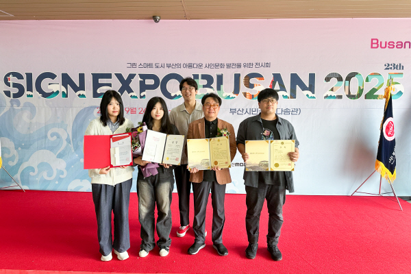 ¡®ºÎ»êÀ» ´ëÇ¥ÇÏ´Â Ä¿¹Â´ÏƼ Ä®¸®Áö¡¯ °æ³²Á¤º¸´ëÇб³ AI½Ã°¢µðÀÚÀÎÇаú ÀçÇлýµéÀÌ ¡®2025 ºÎ»ê »çÀÎ ¿¢½ºÆ÷(SIGN EXPO BUSAN 2025¡¯¿¡¼ ´ë»óÀ» ºñ·ÔÇÑ ¿©·¯ »óÀ» ¼ö»óÇÏ´Â ¼º°ú¸¦ °Åµ×´Ù°í 2ÀÏ ¹àÇû´Ù.