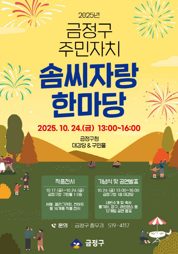ºÎ»ê½Ã ±ÝÁ¤±¸ (±¸Ã»Àå À±ÀÏÇö)´Â 10¿ù 17ÀÏ(±Ý)ºÎÅÍ 10¿ù 26ÀÏ(±Ý)±îÁö ±ÝÁ¤±¸Ã» ´ë°´ç°ú ±¸¹ÎȦ¿¡¼ ¡®2025³â ±ÝÁ¤±¸ ÁÖ¹ÎÀÚÄ¡ ¼Ø¾¾ÀÚ¶û ÇѸ¶´ç¡¯À» °³ÃÖÇÑ´Ù°í 17ÀÏ ¹àÇû´Ù.