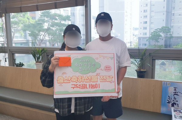 ¼±¸ ¼´ë½Å4µ¿ ±¸´ö°ñ³ª´®ÀÌ(À§¿øÀå ±èÂ÷³²)´Â 2023³â 10¿ùºÎÅÍ Ãâ»ê°¡Á¤¿¡ ÃàÇÏ ¼±¹°(5¸¸ ¿ø »ó´ç)À» ÀüÇϴ¡°¼4 ÃàÇϼ±¹°À» ½õ´Ï´Ù-³Ý(4)Ç÷º½º¡± »ç¾÷À» ½ÃÇàÇϰí ÀÖ´Ù. ±¸´ö°ñ³ª´®ÀÌ´Â Ãâ»ý½Å°í¸¦ ÇÏ·¯ ¿Â °¡Á¤¿¡ Á÷Á¢ ¼±¹°À» Àü´ÞÇÏ¸ç µû¶æÇÑ ÃàÇÏ Àλ縦 °Ç³Þ´Ù.