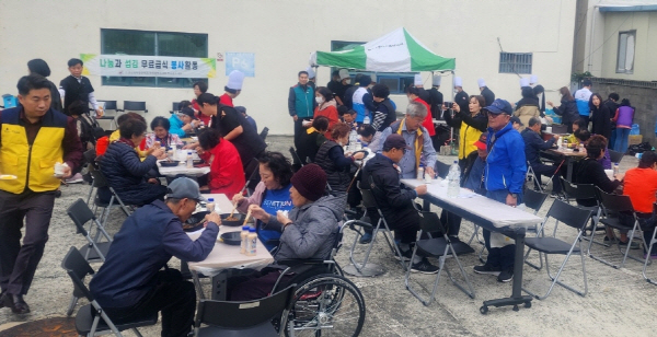 À̹ø Çà»ç´Â ȯÀý±â °¡À»À» ¸ÂÀÌÇÏ¿© ¹Î°ü»óÈ£Çù·ÂÀ» ÅëÇØ º¹Áö ´ë»óÀÚµé°ú ¼ÒÅëÇÏ´Â ±âȸ¸¦ °®°í, º¹Áö¾ÈÀü¸ÁÀ» ³ÐÈ÷±â À§ÇÏ¿© ºÎ»êÁø±¸ À½½Ä¾÷ÁöºÎ Á߽ĺаúÀ§¿øÈ¸¿Í ¹üõ2µ¿ Áֹμ¾ÅÍÀÇ Çù·ÂÀ¸·Î °³ÃֵǾú´Ù. û¼Ò³âÁöµµÇùÀÇȸ, Áö¿ª»çȸÇùÀÇü, ÅëÀåÇùÀÇȸ µî ¹üõ2µ¿ À¯°ü´Üü ȸ¿øµéÀÌ ½Ä»ç¼ºùÀ» µ½°í ¿ä±¸¸£Æ® ÈĽÄÀ» Á¦°øÇÏ´Â µî µû¶æÇÑ ºÀ»çȰµ¿À» ÆîÃÄ ÈÆÈÆÇÑ ºÐÀ§±â¸¦ ´õÇß´Ù.