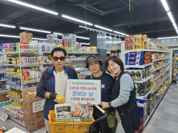 ¼öÁ¤5µ¿ ÇÏÀ±½Ä ȸÀåÀº ¡°Áö¿ª»çȸº¸ÀåÇùÀÇü ÁÖ°üÀ¸·Î ½ÃÇàÇϰí ÀÖ´Â µ¿±¸Èñ¸Á³ª´®Á¡»§¿¡ ÅëÀåµéµµ µ¿ÂüÇϱâ À§ÇØ ¿¬ÃʺÎÅÍ ½Ê½ÃÀÏ¹Ý ÈÄ¿ø±ÝÀ» ¸ð¾Æ À̹ø Çà»ç¸¦ ÃßÁøÇÏ°Ô µÇ¾ú´Ù.¡±¸ç, ¡°¿ì¸®µ¿³× ±¸¼®±¸¼®À» Á¦ÀÏ Àß ¾Æ´Â ÅëÀåµéÀÌ ½ÇÁ¦ ¾î·Á¿î ÁֹεéÀÌ ÇÊ¿ä·Î ÇÏ´Â ¹°Ç°À» °í¹ÎÇÏ¿© ±¸ÀÔÇÏ´Â °úÁ¤ÀÌ ¸Å¿ì º¸¶÷ÀÖ¾ú´Ù. ¾ÕÀ¸·Îµµ ¼öÁ¤5µ¿ ÅëÀåÇùÀÇȸ´Â ¿ì¸®µ¿³× ¾î·Á¿î ÀÌ¿ôÀ» À§ÇØ Àû±Ø ³ë·ÂÇϰڴÙ.¡±°í ÀüÇß´Ù.
