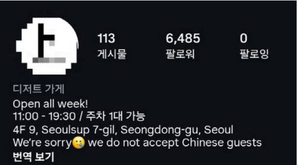 ÀÌ Ä«Æä´Â ÀνºÅ¸±×·¥ °èÁ¤¿¡ ¡®We¡¯re sorry. we do not accept Chinese guests¡¯(¿ì¸®´Â Áß±¹ÀÎ ¼Õ´ÔÀ» ¹ÞÁö ¾Ê´Â´Ù)¶õ °øÁö¸¦ ³»°É¾ú´Ù. ÀÌÈÄ 19¸¸ ÆÈ·Î¿ö¸¦ º¸À¯ÇÑ Áß±¹ÀÎ ÀÎÇ÷ç¾ð¼°¡ ÀÚ½ÅÀÇ SNS¿¡ ºñÆÇ ¿µ»óÀ» °Ô½ÃÇÏ¸ç º»°ÝÀûÀ¸·Î ³í¶õÀÌ µÆ´Ù.