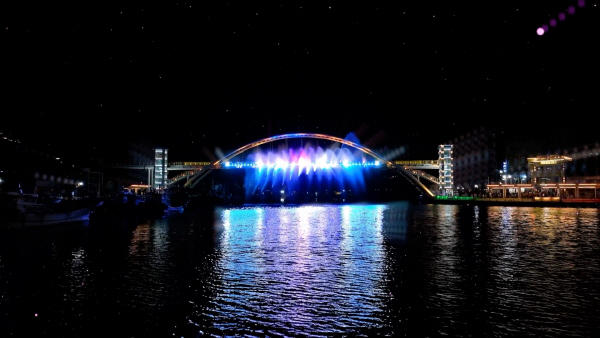 ÇÙ½É ÄÜÅÙÃ÷ÀÎ ¡®°­±¸¾Èºê¸´Áö ±³·®ºÐ¼ö¡¯´Â ´Ù¸®¿¡¼­ ¿ªµ¿ÀûÀ¸·Î ºÐÃâµÇ´Â ¹°Áٱ⿡ ´Ùä·Î¿î Á¶¸íÀ» ´õÇϰí, À½¾Ç°ú ¿µ»óÀÌ ¾î¿ì·¯Áø ¹Ìµð¾î¼î¸¦ ¿¬ÃâÇÑ´Ù. ÇÁ·ÎÁ§¼Ç ¸ÊÇÎ ±â¼úÀ» ÅëÇØ ¼ö¸é À§¿¡ Åõ»çµÇ´Â ¿µ»óÀº °­±¸¾ÈÀÇ ¹Ì·¡ ºñÀüÀ» »ýµ¿°¨ ÀÖ°Ô Ç¥ÇöÇϸç, ¹° À§¿¡¼­ ÆîÃÄÁö´Â ÇÑ ÆíÀÇ ¿¹¼ú °ø¿¬À» ¿¬»óÄÉ ÇÑ´Ù. ºû°ú ¹°ÀÌ ¾î¿ì·¯Áø Àå°üÀº ¡®Ç×±¸ÀÇ ¹ãÀ» ¿¹¼ú·Î ¿«Àº ¹«´ë¡¯·Î °ü¶÷°´¿¡°Ô ¸ôÀÔ°¨À» ¼±»çÇϱ⿡ ÃæºÐÇÏ´Ù.