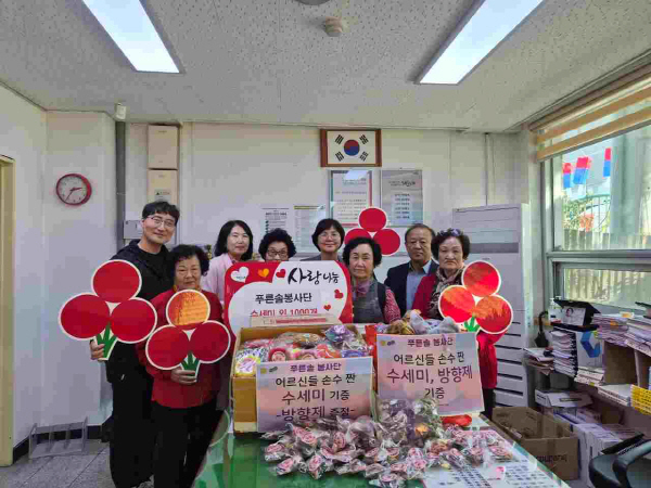ÇØ¿î´ë±¸ ¹Ý¼Û1µ¿ °æ·Î´ç ȸ¿øµé·Î ±¸¼ºµÈ Ǫ¸¥¼ÖºÀ»ç´ÜÀº ȸ¿øµéÀÌ Á÷Á¢ ¸¸µç ¼ö¼¼¹Ì¿Í ¹æÇâÁ¦ 1,000°³¸¦ °ü³» º¹Áö½Ã¼³ ¹× Àú¼Òµæ °¡Á¤¿¡ ±âŹÇÏ¸ç µû¶æÇÑ ³ª´®À» ½ÇõÇß´Ù.
