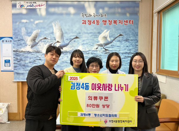 ºÎ»ê »çÇϱ¸ ±«Á¤4µ¿ û¼Ò³âÁöµµÇùÀÇȸ´Â Áö³ 5ÀÏ Áö¿ª ³» Àú¼Òµæ û¼Ò³â °¡±¸¸¦ Áö¿øÇϱâ À§ÇØ 80¸¸ ¿ø »ó´çÀÇ ÀÇ·ù ÄíÆùÀ» ±«Á¤4µ¿ ÇàÁ¤º¹Áö¼¾ÅÍ¿¡ Àü´ÞÇß´Ù.