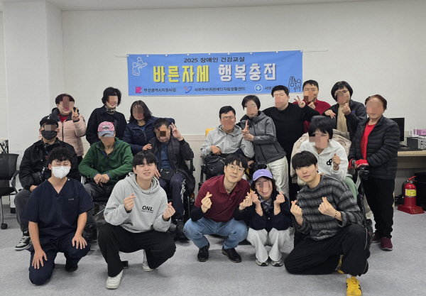 ºÎ»êº¸°Ç´ëÇб³ ¹°¸®Ä¡·á°ú´Â »çÇϱ¸ º¸°Ç¼Ò°¡ ÁÖÃÖÇÏ°í »çÇϵιÙÄûÀå¾ÖÀÎÀÚ¸³»ýȰ¼¾ÅͰ¡ ÁÖ°üÇÑ 2025 Àå¾ÖÀÎ °Ç°±³½Ç ¡®¹Ù¸¥ÀÚ¼¼ Çàº¹ÃæÀü¡¯ ÇÁ·Î±×·¥¿¡ Âü¿©ÇÏ¿© Áö¿ª »çȸ Àå¾ÖÀÎÀÇ °Ç° ÁõÁø°ú ¿Ã¹Ù¸¥ ½ÅüÀÚ¼¼ ±³À°À» À§ÇÑ ºÀ»çȰµ¿À» ÁøÇàÇÏ¿´´Ù.