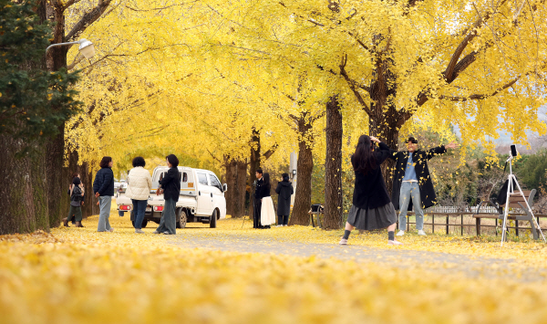 Áö¿ª ÁÖ¹ÎÀº ¹°·Ð ÁøÁÖ¿Í ´ë±¸ µî Àα٠Áö¿ª¿¡¼ ¿Â ³ªµéÀ̰´µéÀº ÅͳÎó·³ ÆîÃÄÁø ÀºÇ೪¹«±æÀ» °Å´Ò°Å³ª º¥Ä¡¿¡ ¾É¾Æ °¡À»ÀÇ ³¡ÀÚ¶ôÀ» °¨»óÇß´Ù. ¹Ý·Á°ßÀ» ǰ¿¡ ¾È°í °¡À» dz°æÀ» ´«¿¡ ´ã°Å³ª Ȳ±Ýºû ÅͳÎÀ» ¹è°æÀ¸·Î ½º¸¶Æ®ÆùÀ» ³ôÀÌ µé¾î ¼¿Ä«¸¦ Âï´Â 20´ë Ä¿Çà µî Àú¸¶´ÙÀÇ ¹æ½ÄÀ¸·Î ´Ê°¡À»À» ±â·ÏÇß´Ù.