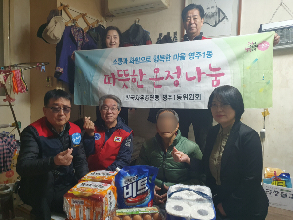 ºÎ»ê Áß±¸ Çѱ¹ÀÚÀ¯ÃÑ¿¬¸Í ¿µÁÖ1µ¿À§¿øÈ¸(À§¿øÀå ÀÌâ¿)¿¡¼´Â 12ÀÏ ¿µÁÖ1µ¿ µ¶°Å³ëÀÎ µî Ãë¾à°èÃþ 6¼¼´ë¸¦ °¡Á¤¹æ¹®ÇÏ¿© »ç¶ûÀÇ »ýÇÊǰÀ» Àü´ÞÇÏ°í ¾ÈºÎ È®ÀÎÀ» ÇÏ¿´´Ù.