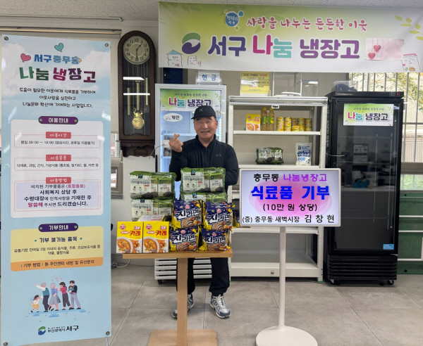ºÎ»ê ¼±¸ Ãæ¹«µ¿ »õº®½ÃÀå ¼ö¼®ÀÌ»ç ±èâÇö ¾¾´Â Ãæ¹«µ¿ ³ª´®³ÃÀå°í¿¡ 10¸¸ ¿ø »ó´çÀÇ ½Ä·áǰÀ» ±âºÎÇß´Ù.