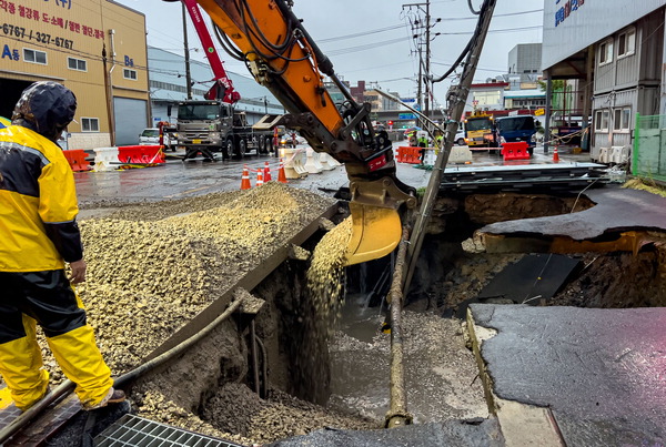 Áö³­ÇØ 9¿ù ºÎ»êµµ½Ãöµµ »ç»ó~Çϴܼ± °ø»ç±¸°£ 1°ø±¸ ±Ùó¿¡¼­ °¡·Î 10m, ¼¼·Î 5m, ±íÀÌ 8m ½ÌũȦÀÌ ¹ß»ýÇØ º¹±¸ ÀÛ¾÷À» ¹úÀ̰í ÀÖ´Ù. ±¹Á¦½Å¹®DB