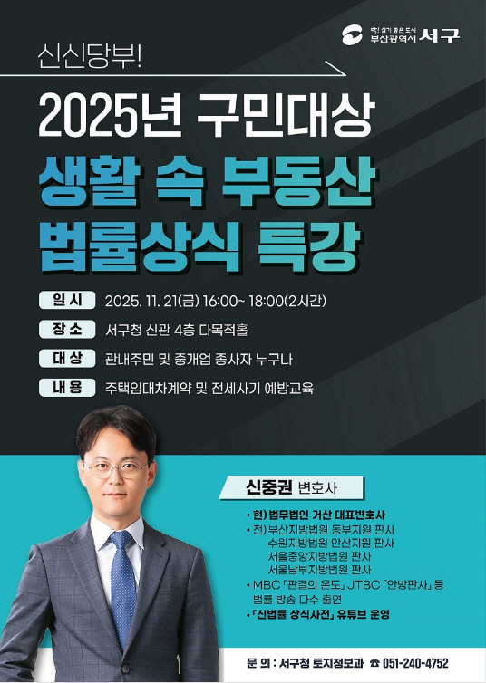 ºÎ»ê ¼±¸(±¸Ã»Àå °øÇѼö)´Â ¿À´Â 21ÀÏ ¼±¸Ã» ½Å°ü 4Ãþ ´Ù¸ñÀûȦ¿¡¼ ¡®½Å½Å´çºÎ! 2025³â ±¸¹Î´ë»ó »ýȰ ¼Ó ºÎµ¿»ê ¹ý·ü»ó½Ä Ư°¡¯À» °³ÃÖÇÑ´Ù°í ¹àÇû´Ù.