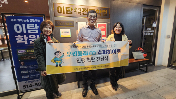 ºÎ»ê µ¿·¡±¸ »çÁ÷2µ¿ ÇàÁ¤º¹Áö¼¾ÅÍ(µ¿Àå ±è¼±Èñ)´Â Áö³ 12ÀÏ Áö¿ª»çȸº¸ÀåÇùÀÇü(À§¿øÀå ÃÖÇö¼ö) À§¿ø°ú ÇÔ²² 2025³â¡®¿ì¸® µ¿·¡(ÔÔÕÑ) ½´ÆÛÈ÷¾î·Î ÀÎÁõÁ¦ »ç¾÷¡¯¿¡ ½Å±Ô Âü¿©ÇÏ´Â ÈÄ¿ø¾÷ü ÀÌŽ¼öÇаúÇÐÀü¹®Çпø(¿øÀå ±èÁ¤¿ø)¿¡ ÀÎÁõ ÇöÆÇÀ» Àü´ÞÇß´Ù°í ¹àÇû´Ù.