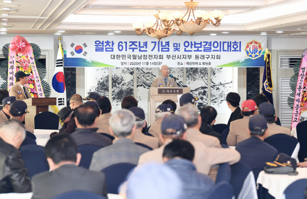 ºÎ»ê µ¿·¡±¸(±¸Ã»Àå ÀåÁØ¿ë)´Â Áö³ 14ÀÏ ¿ù³²ÀüÂüÀüÀÚȸ µ¿·¡±¸Áöȸ(ȸÀå °¿µ°©)°¡ ÇØ¾ÏºßÆä(¿¬Á¦±¸ ¼ÒÀç)¿¡¼¡®¿ù³²Àü ÂüÀü Á¦61Áֳ⠱â³ä ¹× ¾Èº¸ °áÀÇ´ëȸ¡¯¸¦ ¿°í, Èñ»ý°ú Çå½ÅÀ¸·Î ±¹°¡ ¹ßÀü¿¡ ±â¿©ÇÑ ÂüÀü¿ë»çµéÀÇ °øÈÆÀ» ±â¸®´Â ÇÑÆí ±»°ÇÇÑ ¾Èº¸ ÀÇÁö¸¦ ´ÙÁö´Â ½Ã°£À» °¡Á³´Ù°í ¹àÇû´Ù.