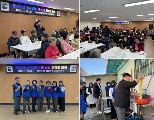 ¹Ù¸£°Ô»ì±â¿îµ¿ ¼±¸ ³²ºÎ¹Î2µ¿ À§¿øÈ¸(À§¿øÀå ±èÁø°©, ¿©¼ºÀ§¿øÀå ±è¹Ì¼º)´Â Áö³ 18ÀÏ °ü³» ¾î¸£½Å 300¿© ¸íÀ» ´ë»óÀ¸·Î Á÷Á¢ ¸¸µç Â¥Àå¸é°ú ¶±, °úÀÏ µîÀ» ´ëÁ¢ÇÏ´Â ¡®¿ì¸®¸¶À» Àå¼öºñ°á! Á¤ ³ª´® Â¥Àå¸é µ¥ÀÌ¡¯ Çà»ç¸¦ °³ÃÖÇÏ¿© Ȱ±âÂ÷°í ¿ÂÁ¤ °¡µæÇÑ ³²ºÎ¹Î2µ¿ ¸¸µé±â¿¡ ±â¿©Çß´Ù.