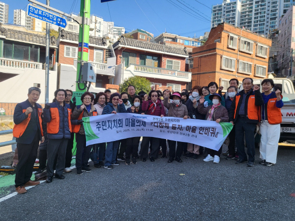 ºÎ»êÁø±¸ ÀüÆ÷2µ¿ ÁÖ¹ÎÀÚġȸ(ȸÀå ÇÑÀçö)´Â Áö³ 11¿ù 20ÀÏ ÀüÆ÷2µ¿ °ü³»¿¡¼ ÁÖ¹ÎÀÚġȸ ¸¶À»ÀÇÁ¦ÀÎ ¡®´ÙÇÔ²² µ¹ÀÚ, ¸¶À» ÇѹÙÄû¡¯»ç¾÷À» ÃßÁøÇÏ¿´´Ù.