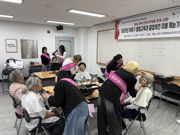 À̹ø ÃÔ¿µÀº ¹®Çر³À°À» ÅëÇØ »õ·Î¿î ¹è¿òÀÇ ±æÀ» °É¾î¿Â ¾î¸£½ÅµéÀÇ Á¹¾÷À» ±â³äÇϱâ À§ÇØ ¸¶·ÃµÈ ÀÚ¸®´Ù. ƯÈ÷ ºÎ»êº¸°Ç´ëÇб³ ±Û·Î¹úºäƼ °è¿ À¯ÀÇ°æ ±³¼ö(Æò»ý±³À°¿øÀå)¿Í ÀçÇлý 6¸íÀÌ Àç´É±âºÎ·Î Âü¿©ÇØ Çì¾î ½ºÅ¸Àϸµ°ú ¸ÞÀÌÅ©¾÷À» Áö¿øÇϸç ÃÔ¿µÀ» ´õ¿í ¶æ±í°Ô Çß´Ù.