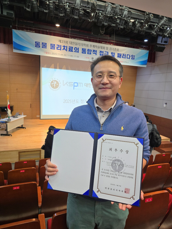 µ¿¸í´ë À̽ÅÈ£ ±³¼ö(¹Ý·Áµ¿¹°º¸°ÇÇаú)¿Í ¼±¸°´ë Â÷À¯¸® ±³¼ö(¹°¸®Ä¡·áÇаú)´Â ÃÖ±Ù °³ÀÇ º¸Çà ºÒÆíÀ» ÀÎÀ§ÀûÀ¸·Î À¯µµÇÏ¿© º¸»óÀû º¸ÇàÀ» ¿îµ¿¿ªÇÐÀûÀ¸·Î ºÐ¼®ÇÑ ³»¿ëÀ¸·Î, 2025³âµµ Á¦23ȸ ´ëÇѹ°¸®ÀÇÇÐȸ Ãß°èÇмú´ëȸ Æ÷½ºÅÍ ºÎ¹® ÃÖ¿ì¼ö»ó¿¡ ¼±Á¤ ¼ö»óÇß´Ù.