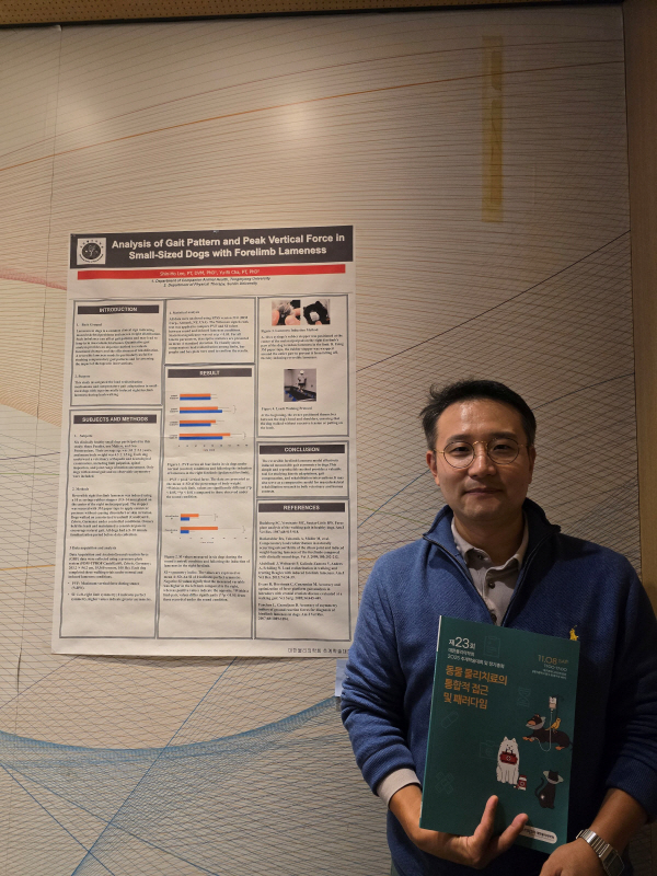 À̹ø ¼ö»óÀÛÀº ¡¸Analysis of Gait Pattern and Peak Vertical Force in Small Sized Dogs with Forelimb Lameness (¼ÒÇü°ß ¾Õ´Ù¸® ÆÄÇà ½Ã º¸Çà ÆÐÅÏ ¹× ¼öÁ÷ Áö¸é¹Ý¹ß·Â ºÐ¼®)¡¹À¸·Î, µ¿¹° ÀçȰ ¹°¸®Ä¡·á ºÐ¾ßÀÇ ±âÃÊ µ¥ÀÌÅ͸¦ Á¦°øÇϸç ÇÐ°è ¹× ÀÓ»ó ÇöÀåÀÇ Å« °ü½ÉÀ» ¹Þ¾Ò´Ù. ƯÈ÷, ¼ÒÇü°ßÀÇ ¾Õ´Ù¸® ÀýÀ½ÀÌ ÆíÃø¼ºÀ¸·Î ¹ß»ýÇÒ ½Ã¿¡ º¸»óÀû º¸ÇàÀ» ºÐ¼®Çϰí, °úÇÐÀû ±Ù°Å¸¦ ¸¶·ÃÇÏ¿´À¸¸ç, ±Þ¼ºÀåÇÏ´Â ±¹³» µ¿¹° ÀçȰ ½ÃÀå¿¡ ½ÇÁúÀûÀÎ ÀÓ»ó Àû¿ë °¡´É¼ºÀ» ³ô¿´´Ù´Â Á¡¿¡¼ ¿ì¼öÇÑ Æò°¡¸¦ ¹Þ¾Ò´Ù.