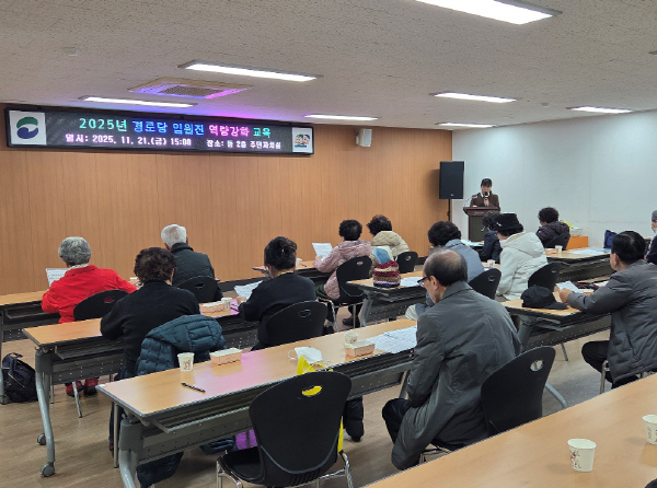 ºÎ»ê ¼±¸ ³²ºÎ¹Î2µ¿(µ¿Àå ¹ÚÇýÁ¤)Àº Áö³ 11¿ù 21ÀÏ Ãµ¿ì°æ·Î´ç µî °ü³» 12°³ °æ·Î´çÀÇ È¸Àå°ú Ãѹ«¸¦ ´ë»óÀ¸·Î ¡®°æ·Î´ç ȸÀå´Ü ¿ª·® °È ±³À°¡¯À» ½Ç½ÃÇß´Ù.
