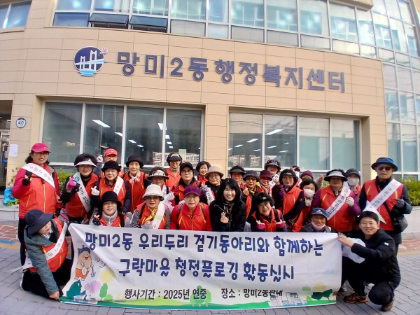 ¡¸±¸¶ô¸¶À» ûÁ¤ Ç÷αë Ȱµ¿¡¹Àº ¸Á¹Ì2µ¿ÀÇ ±ú²ýÇÑ È¯°æ Á¶¼º°ú ÁֹεéÀÇ °Ç°ÇÑ ¶óÀÌÇÁ½ºÅ¸ÀÏ ÁõÁøÀ» À§ÇØ ¸Á¹Ì2µ¿ ¿ì¸®µÎ¸® °È±â µ¿¾Æ¸®¿Í Çù¾÷ÇÏ¿© ÁøÇàµÇ´Â Çà»ç·Î 2025³â °¢ ºÐ±âº°·Î ÁøÇàµÈ´Ù.