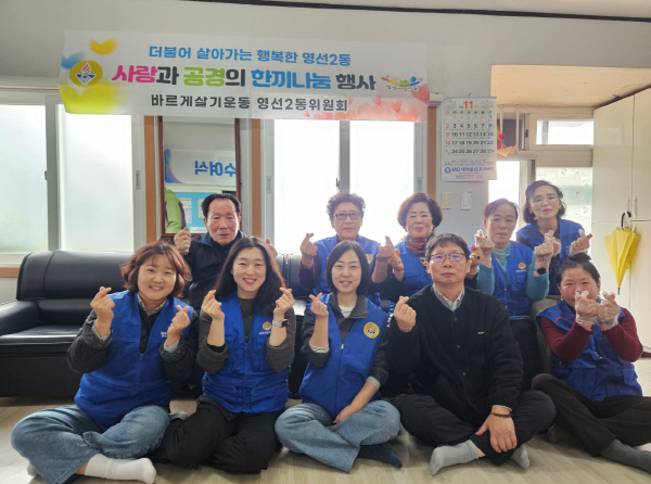 ¿µµµ±¸ ¹Ù¸£°Ô»ì±â¿îµ¿ ¿µ¼±2µ¿À§¿øÈ¸(À§¿øÀå Ãß¿¬ÀÚ)´Â Áö³ 11¿ù 27ÀÏ, ¿µ¼±µ¿ À̼۵µ °æ·Î´ç(ÇâÅ䱿 12)¿¡¼ °ü³» ¾î¸£½Å 50¿© ¸íÀ» ¸ð½Ã°í ¡®»ç¶û°ú °ø°æÀÇ ÇÑ ³¢ ³ª´®, ¶±±¹µ¥ÀÌ¡¯ Çà»ç¸¦ °³ÃÖÇß´Ù.