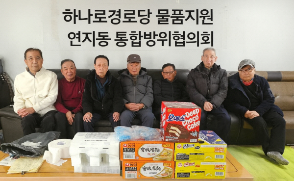 ºÎ»êÁø±¸ ¿¬Áöµ¿ ÅëÇÕ¹æÀ§ÇùÀÇȸ(ȸÀå ±è¼ºÁø)´Â 12¿ù 3ÀÏ(¼ö)¿¡ ¿¬¸»À» ¸Â¾Æ °ü³» °á¿¬À» ¸ÎÀº Çϳª·Î °æ·Î´çÀ» ¹æ¹®ÇÏ¿© ¾î¸£½Åµé²² ¹°Ç°À» Àü´ÞÇÏ°í ¾ÈºÎ¸¦ »ìÆñ´Ù.