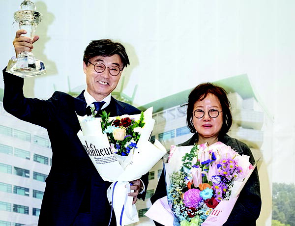 4ÀÏ ºÎ»ê»ó°øÈ¸ÀǼҿ¡¼­ µ¿¸í´ë»óÀ» ¼ö»óÇÑ Á¤¼º¿ì(¿ÞÂÊ) Áö¸Æ½º ´ëÇ¥ÀÌ»ç¿Í ºÎÀÎÀÌ ±â³äÃÔ¿µÀ» Çϰí ÀÖ´Ù. Àü¹Îö ±âÀÚ