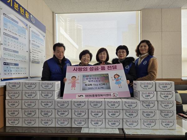 ºÎ»ê ³²±¸ Çѱ¹ÀÚÀ¯ÃÑ¿¬¸Í ´ë¿¬6µ¿ºÐȸ(ºÐȸÀå ¹ÚÁ¤´ö)´Â 12¿ù 4ÀÏ ¿¬¸»À» ¸Â¾Æ ¶±±¹¶± 43¹Ú½º¸¦ ¸¶·ÃÇØ °ü³» Ãë¾à°èÃþ°ú °æ·Î´ç¿¡ Àü´ÞÇÑ´Ù°í ¹àÇû´Ù. ÁغñµÈ ¼ºÇ°Àº Ȧ·Î »ç´Â ¾î¸£½Åµé°ú Áö¿ª °æ·Î´ç¿¡ ¹èºÎµÉ ¿¹Á¤ÀÌ´Ù.