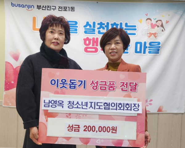 ºÎ»êÁø±¸ ÀüÆ÷1µ¿ û¼Ò³âÁöµµÇùÀÇȸ(ȸÀå ³²¿µ¿Á)´Â 12¿ù 5ÀÏ ¿¬¸» ¾î·Á¿î ÀÌ¿ôµ½±â ¼º±Ý 20¸¸ ¿øÀ» ÀüÆ÷1µ¿(µ¿Àå Á¤Á¤¶õ)¿¡ Àü´ÞÇÏ¿´´Ù.
