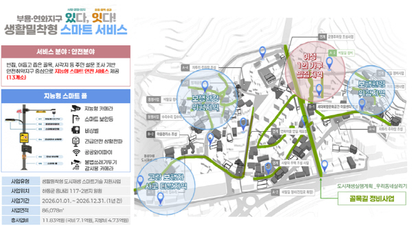 Å뿵½Ã´Â ÃÑ 11¾ï8300¸¸ ¿øÀ» µé¿© µµÃµµ¿ ÀÏ´ë¿¡ ±×´Ã¸·, AI(ÀΰøÁö´É) Áö´ÉÇü CCTV, ¿Â¿ÀÇÀÚ, ¹«¼±ÃæÀü±â, ¿ÍÀÌÆÄÀÌ µîÀ» °®Ãá ¡®Áö´ÉÇü ±âµÕ(½º¸¶Æ® Æú)¡¯À» 7°÷¿¡ ¼³Ä¡ÇÑ´Ù. ¶Ç ¾ÈÀü Ãë¾à°èÃþÀ» Áö¿øÇϰíÀÚ ¿òÁ÷ÀÓ¡¤Á¶µµ ¼¾¼, º¹¾à ¾Ë¶÷, ÀÀ±Þ È£Ãâ µî ±â´ÉÀÌ ÀÖ´Â ¾×ÀÚ ÇüÅÂÀÇ ¡®IoT(»ç¹° ÀÎÅͳÝ) »ýȰ¾ÈÀü½Ã½ºÅÛ¡¯À» 130¼¼´ë¿¡ °ø±ÞÇÑ´Ù. ÀÌ¿Í ÇÔ²² ÁֹΠÅëÇàÀÌ ÀæÀº º¸Çà·Î 2°÷¿¡ Æø¿°, ¹Ì¼¼¸ÕÁö¸¦ ¿ÏÈÇÏ´Â ¡®½º¸¶Æ® ¾È°³ ºÐ»ç±â(Ä𸵠Æ÷±×)¡¯¸¦ ¹èÄ¡ÇÒ ¿¹Á¤ÀÌ´Ù.