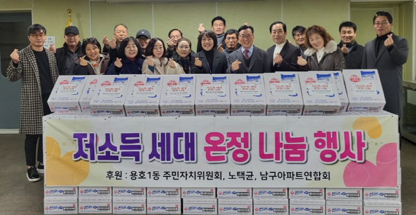 ºÎ»ê ³²±¸ ¿ëÈ£1µ¿ ÁÖ¹ÎÀÚÄ¡À§¿øÈ¸(À§¿øÀå Ȳ¿À±Ô)´Â ¿¬¸»À» ¸Â¾Æ Áö³ 12¿ù 8ÀÏ Àú¼Òµæ ¼¼´ë¿¡ ¶ó¸éÀ» Àü´ÞÇÏ´Â ³ª´® Çà»ç¸¦ ÁøÇàÇß´Ù.