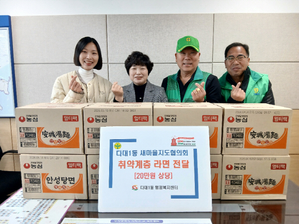 ºÎ»ê »çÇϱ¸ ´Ù´ë1µ¿ »õ¸¶À»ÁöµµÀÚÇùÀÇȸ´Â Áö³ 9ÀÏ Ãë¾à°èÃþ Áö¿øÀ» À§ÇØ ¸¶·ÃÇÑ 20¸¸ ¿ø »ó´çÀÇ ¶ó¸é 8¹Ú½º¸¦ ´Ù´ë1µ¿ ÇàÁ¤º¹Áö¼¾ÅÍ¿¡ Àü´ÞÇß´Ù.