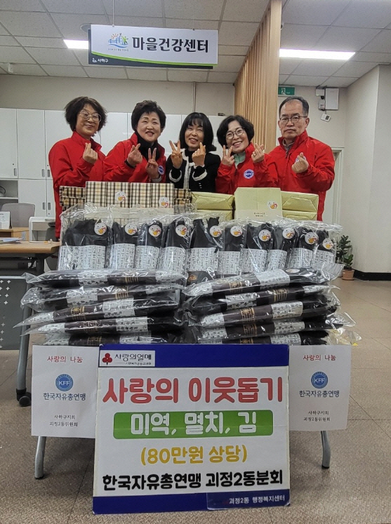 ºÎ»ê »çÇϱ¸ ±«Á¤2µ¿ ÇàÁ¤º¹Áö¼¾ÅÍ´Â Áö³ 8ÀÏ Çѱ¹ÀÚÀ¯ÃÑ¿¬¸Í ±«Á¤2µ¿À§¿øÈ¸°¡ Áö¿ª ³» Ãë¾à°èÃþÀ» À§ÇØ 80¸¸ ¿ø »ó´çÀÇ ÀÌ¿ôµ½±â ¼ºÇ°(¹Ì¿ª, ¸êÄ¡, ±è)À» ±âŹÇß´Ù°í ¹àÇû´Ù.