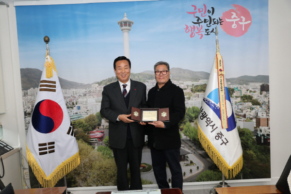 ºÎ»ê Áß±¸(±¸Ã»Àå ÃÖÁøºÀ)´Â Áö³ 8ÀÏ (»ç)Áß±¸ÀüÅë½ÃÀ忬ÇÕȸ ȸÀå´ÜÀÌ Âü¼®ÇÑ °¡¿îµ¥, Áö¿ª»çȸ ¹ßÀü°ú ÀüÅë½ÃÀå »ó»ýÈÇÕ ÁõÁø¿¡ ±â¿©ÇÑ (»ç)Áß±¸ÀüÅë½ÃÀ忬ÇÕȸ¿¡ °¨»çÆÐ¸¦ Àü´ÞÇÏ°í ºÒ¿ìÀÌ¿ôµ½±â ¼ºÇ°À» ±âŹ¹Þ´Â ¶æ±íÀº Çà»ç¸¦ ÁøÇàÇÏ¿´´Ù.