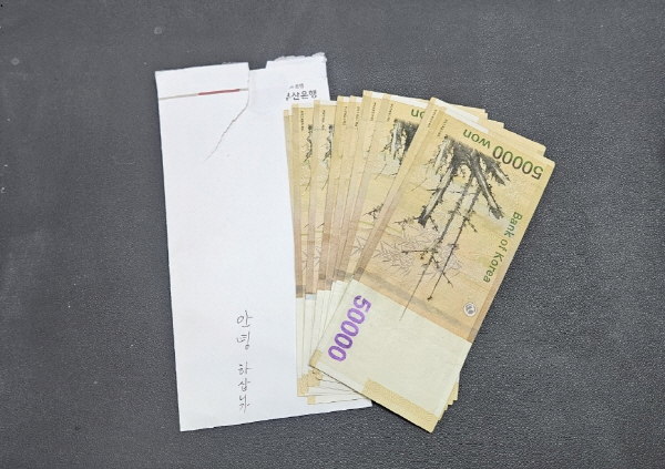 ¾î¸£½ÅÀº ¡°Æò¼Ò ¸¹Àº µµ¿òÀ» ¹Þ¾Æ¿Ô±â¿¡ ±× ¸¶À½À» Á¶±ÝÀ̳ª¸¶ µ¹·Áµå¸®°í ½Í¾ú½À´Ï´Ù. À̸§Àº ¹¯Áö ¸»°í ¹Þ¾ÆÁÖ¼¼¿ä¡±¶ó¸ç ¼º±ÝÀ» Àü´ÞÇß´Ù. ºÀÅõ ¾È¿¡´Â ³Ë³ËÇÏÁö ¾ÊÀº ÇüÆí ¼Ó¿¡¼µµ ÇÑ Ç¬ µÎ Ǭ ¾Æ²¸ ¸ð¾ÒÀ» Á¤¼ºÀÌ ±×´ë·Î ´ã°Ü ÀÖ¾ú´Ù.