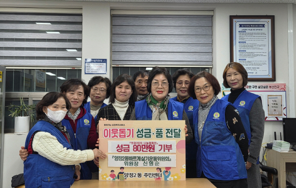 ºÎ»êÁø±¸ ¾çÁ¤2µ¿ ¹Ù¸£°Ô»ì±â¿îµ¿À§¿øÈ¸(À§¿øÀå ½ÅÇü¼ø)´Â Áö³ 8ÀÏ Áö¿ª»çȸ¿¡ Èñ¸ÁÀ» ÀüÇÏ´Â ¼º±Ý 80¸¸ ¿øÀ» ±âºÎÇß´Ù. À̹ø ±âºÎ´Â ¼Ò¿ÜµÈ ÀÌ¿ô¿¡°Ô ÀÛÀº ÈûÀ» º¸Å±â À§ÇØ ¸¶·ÃµÇ¾úÀ¸¸ç, ±âºÎ±ÝÀº Áö¿ª ³» Ãë¾à°èÃþÀ» À§ÇÑ Áö¿ø¿¡ »ç¿ëµÉ ¿¹Á¤ÀÌ´Ù.