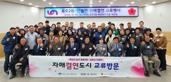 ºÎ»ê ³²±¸ ¿ëÈ£2µ¿°ú ÀüºÏ ³²¿ø½Ã Àοù¸éÀÇ ÀڸŰῬ ±³·ùÇà»ç°¡ Áö³ 12¿ù 10ÀÏ ¼ºÈ²¸®¿¡ ¿·È´Ù. À̹ø Çà»ç´Â ¾ç Áö¿ª °£ ¿ìÈ£ ÁõÁø°ú ¹®È ±³·ù¸¦ °ÈÇϱâ À§ÇØ ¸¶·ÃµÈ ÀÚ¸®·Î, Àοù¸éÀå°ú ¹ßÀüÇùÀÇȸÀå ¹× ÇùÀÇȸ ȸ¿øµéÀÌ Á÷Á¢ ¿ëÈ£2µ¿À» ¹æ¹®ÇØ ±³·ùÀÇ Àǹ̸¦ ´õÇß´Ù.