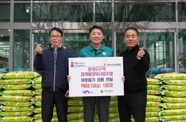 ºÎ»ê ³²±¸ ¹®Çö6±¸¿ª Àç°³¹ßÁ¤ºñ»ç¾÷Á¶ÇÕ(Á¶ÇÕÀå ¿À¿ëÇö)Àº Áö³ 12¿ù 10ÀÏ, ºÎ»ê±¤¿ª½Ã ³²±¸(±¸Ã»Àå ¿ÀÀºÅÃ)¿¡ ¹é¹Ì(10kg) 100Æ÷¸¦ Àü´ÞÇß´Ù.