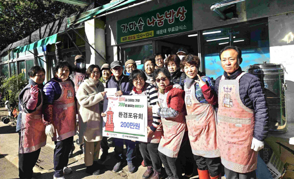 ȯ°æÆ÷À¯È¸´Â ¸ÅÁÖ È¿äÀÏ °¡¸¶¼Ü ¹«·á ±Þ½Ä¼Ò¸¦ ¿î¿µÇÏ¸é¼ 300¸í¿¡°Ô ½Ä»ç´ëÁ¢À» Çϰí, µµ½Ã¶ô 50°³¸¦ ¹è´Þ ÇÏ´Â µî Áö¿ª»çȸ¿¡ µû¶æÇÑ ³ª´®À» ½ÇõÇÏ¸é¼ ¸Å³â Èñ¸Á³ª´®Ä·ÆäÀο¡ ¼º±ÝÀ» ±âŹÇϰí ÀÖ´Ù.