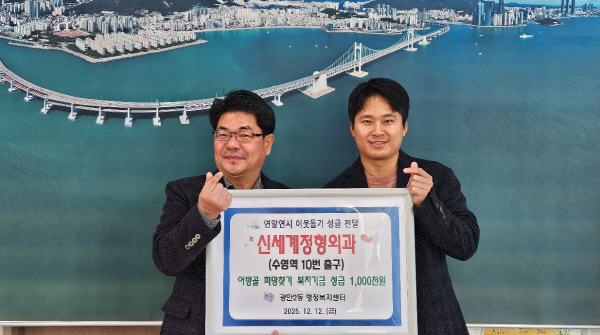 ºÎ»ê±¤¿ª½Ã ¼ö¿µ±¸ ±¤¾È2µ¿ ÇàÁ¤º¹Áö¼¾ÅÍ(µ¿Àå ¿À¼®È£)´Â Áö³ 12ÀÏ ½Å¼¼°èÁ¤Çü¿Ü°ú·ÎºÎÅÍ Áö¿ª»çȸ ³ª´® ¹®È È®»êÀ» À§ÇÑ ¼º±Ý 100¸¸ ¿øÀ» ±âŹ¹Þ¾Ò´Ù°í ¹àÇû´Ù.