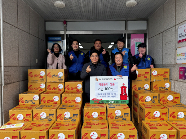 ¿µµµ±¸ µ¿»ï1µ¿ û³âȸ(ȸÀå ±èÇÑ)¿Í ¿µµµ±¸ û³â¿¬ÇÕȸ(ȸÀå ¹é½Â¿î)´Â Áö³ 12¿ù 16ÀÏ ¿¬¸»À» ¸Â¾Æ EJ »ç¹«°¡±¸(´ëÇ¥ ¼ÁØÈ£), µ¿»ïµ¿ ³ó½É°¡¸¶Æ®(´ëÇ¥ ±èµµ¿µ)¿Í ÇÔ²² µ¿»ï1µ¿ ÇàÁ¤º¹Áö¼¾ÅÍ¿¡ ¾î·Á¿î ÀÌ¿ôÀ» À§ÇÑ ¶ó¸é 100¹Ú½º(318¸¸ ¿ø »ó´ç)¸¦ ±âŹÇß´Ù.