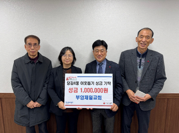 ºÎ»êÁø±¸ ºÎ¾ÏÁ¦Àϱ³È¸(´ãÀÓ¸ñ»ç °¿ëÂù)´Â Áö³ 18ÀÏ, ¼ºÅºÀýÀ» ¾ÕµÎ°í ÀÌ¿ôµ½±â ¼º±Ý 100¸¸ ¿øÀ» ´ç°¨4µ¿(µ¿Àå °Áø¿Á)¿¡ ±âŹÇß´Ù.