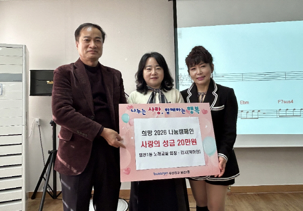 ºÎ»êÁø±¸ ¹üõ1µ¿(µ¿Àå ±èÁÖ¿µ)Àº Áö³ 18ÀÏ ¹üõ1µ¿ ³ë·¡±³½Ç ȸÀå(ÀÌÁ¾À²)°ú ¹ÚÇ϶û °»ç°¡ ¡®Èñ¸Á2026 ³ª´®Ä·ÆäÀΡ¯¿¡ µ¿ÂüÇÏ¸ç »ç¶ûÀÇ ¼º±Ý 20¸¸ ¿øÀ» ±âŹÇß´Ù°í ¹àÇû´Ù.