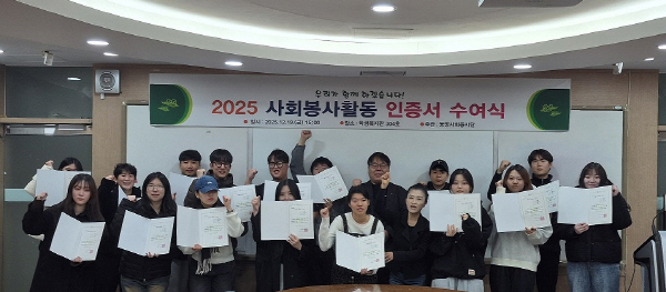 µ¿¸í´ë µ¿¸í»çȸºÀ»ç´ÜÀº 19ÀÏ Çлýº¹Áö°ü¿¡¼ Áö³ÇØ 100½Ã°£ ÀÌ»óÀ» ºÀ»çÇÑ Çлý ÃÑ 23¸í¿¡ ´ëÇÑ »çȸºÀ»çȰµ¿ ÀÎÁõ¼ ¼ö¿©½ÄÀ» °¡Á³´Ù. µ¿¸í´ë ºÀ»ç¿Õ »çȸº¹ÁöÇаú À±°æ¿ø ÇлýÀº Áö³ÇØ 12¿ùºÎÅÍ ¿ÃÇØ 11¿ù±îÁö ÃÑ 205½Ã°£ 30ºÐÀ», ÀÌ¿ôÀ» À§ÇÑ ºÀ»ç¿¡ ÇÒ¾ÖÇÏ¿´´Ù.