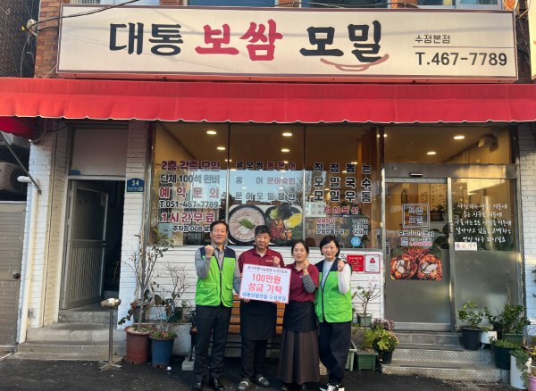 ´ëÅ뺸½Ó¸ð¹Ð ¼öÁ¤º»Á¡(´ëÇ¥ Á¤Áõ°©)Àº Áö³ 18ÀÏ ¼öÁ¤2µ¿ Áö¿ª»çȸº¸ÀåÇùÀÇü(°ø°øÀ§¿øÀå ¼Õ¼±È, ¹Î°£À§¿øÀå ¹®¿Àµ¿)¿¡ »ç¶ûÀÇ ¼º±Ý 100¸¸¿øÀ» ±âŹÇß´Ù.