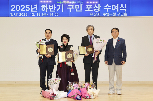 ¼ö¿µ±¸´Â ¡°Á¦22ȸ ÀÚ¶û½º·¯¿î ±¸¹Î»ó ¼ö»óÀÚµéÀº Æò¼Ò Áö¿ª»çȸ¿¡ ±àÁ¤ÀûÀΠȰ·ÂÀ» ºÒ¾î³Ö°í ±¸¹Î °£ À¯´ë °È¿¡ Å©°Ô ±â¿© ÇϽŠºÐµé·Î, ¾ÕÀ¸·Îµµ ÀÌ·¯ÇÑ ¼±ÇÑ ¿µÇâ·ÂÀ» Àû±Ø ¹ß±¼ÇÏ¿©, ¸ðµÎ°¡ ÀÚ±à½ÉÀ» °®´Â ¼ö¿µÀ» ¸¸µé±â À§ÇØ ²÷ÀÓ¾øÀÌ ³ë·ÂÇϰڴ١±¶ó°í ÀüÇß´Ù.